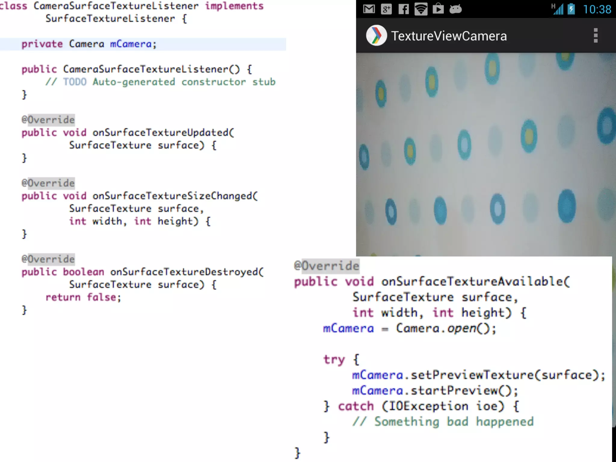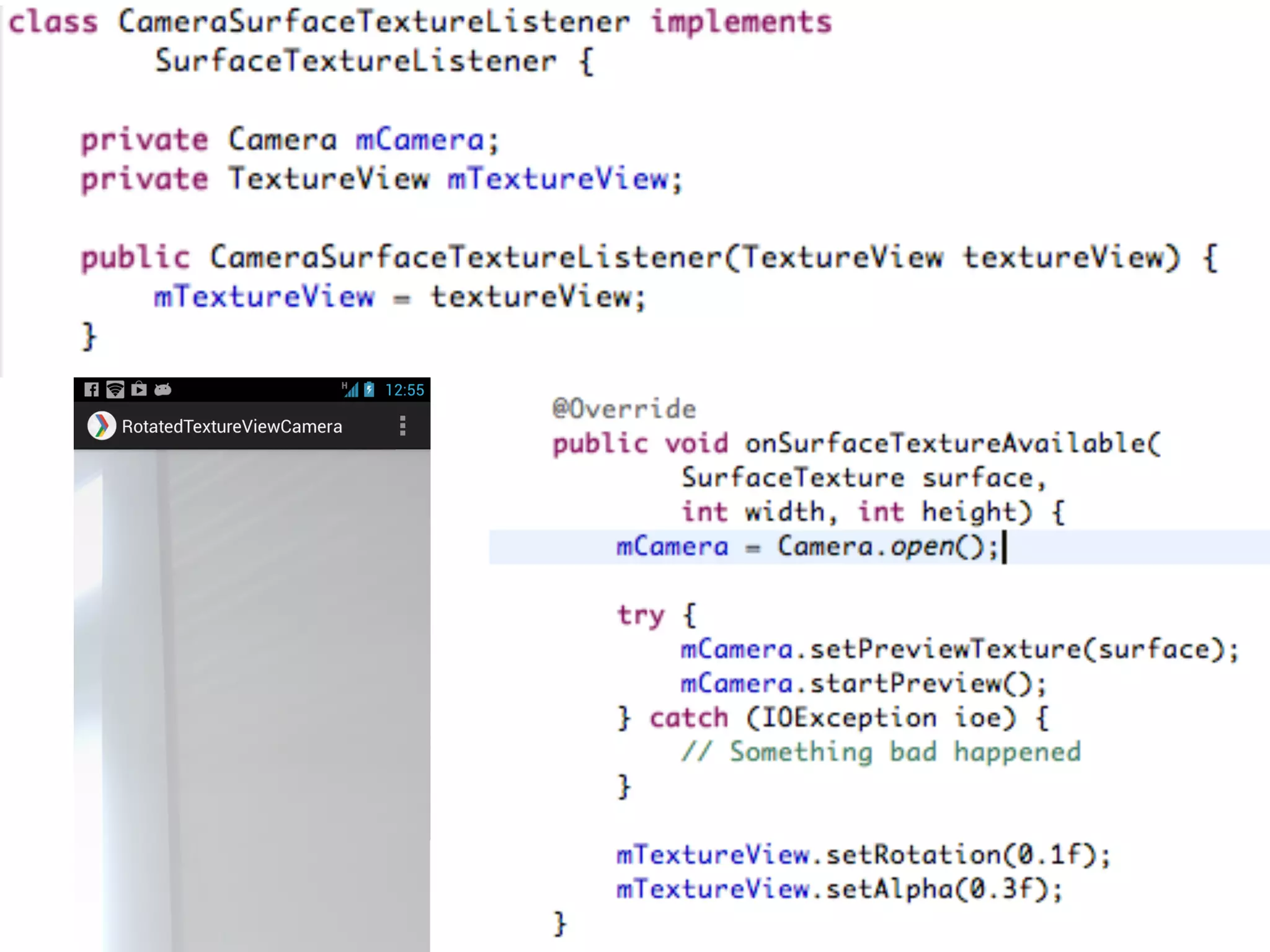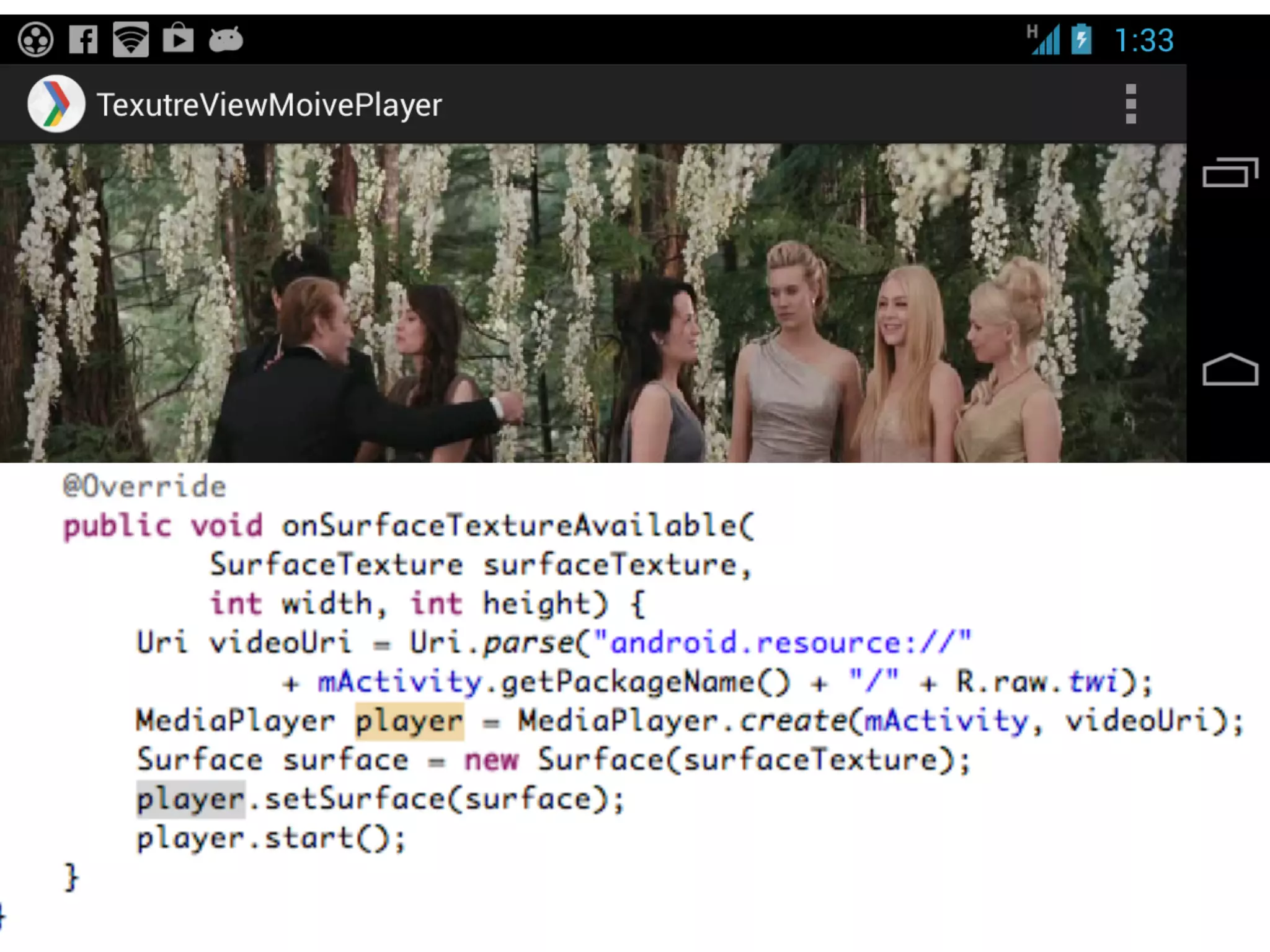 TextureView Demo https://github.com/dalinaum/TextureViewDemo https://play.google.com/store/apps/details? id=kr.gdg.android.textureview