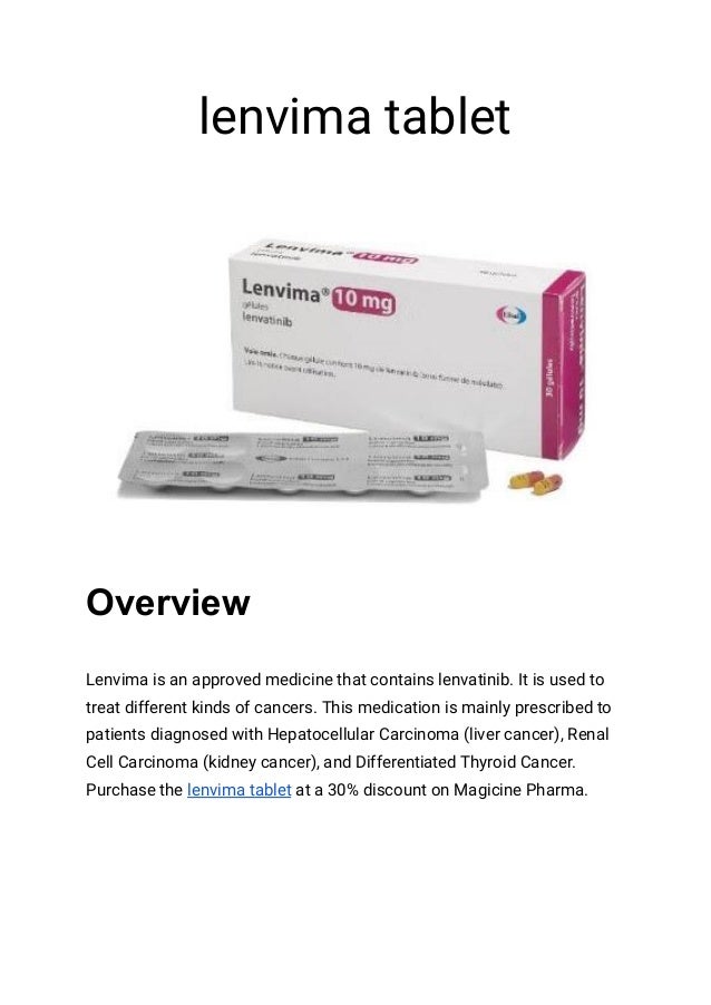 Lenvima is an approved medication containing lenvatinib, used to treat various cancers, primarily hepatocellular, renal cell, and differentiated thyroid cancers. It works by inhibiting specific receptor tyrosine kinases involved in cancer progression and can show effects within 1 to 4 hours after oral administration. Lenvima is available in 10mg capsules and can be purchased at a 30% discount from Magicine Pharma.