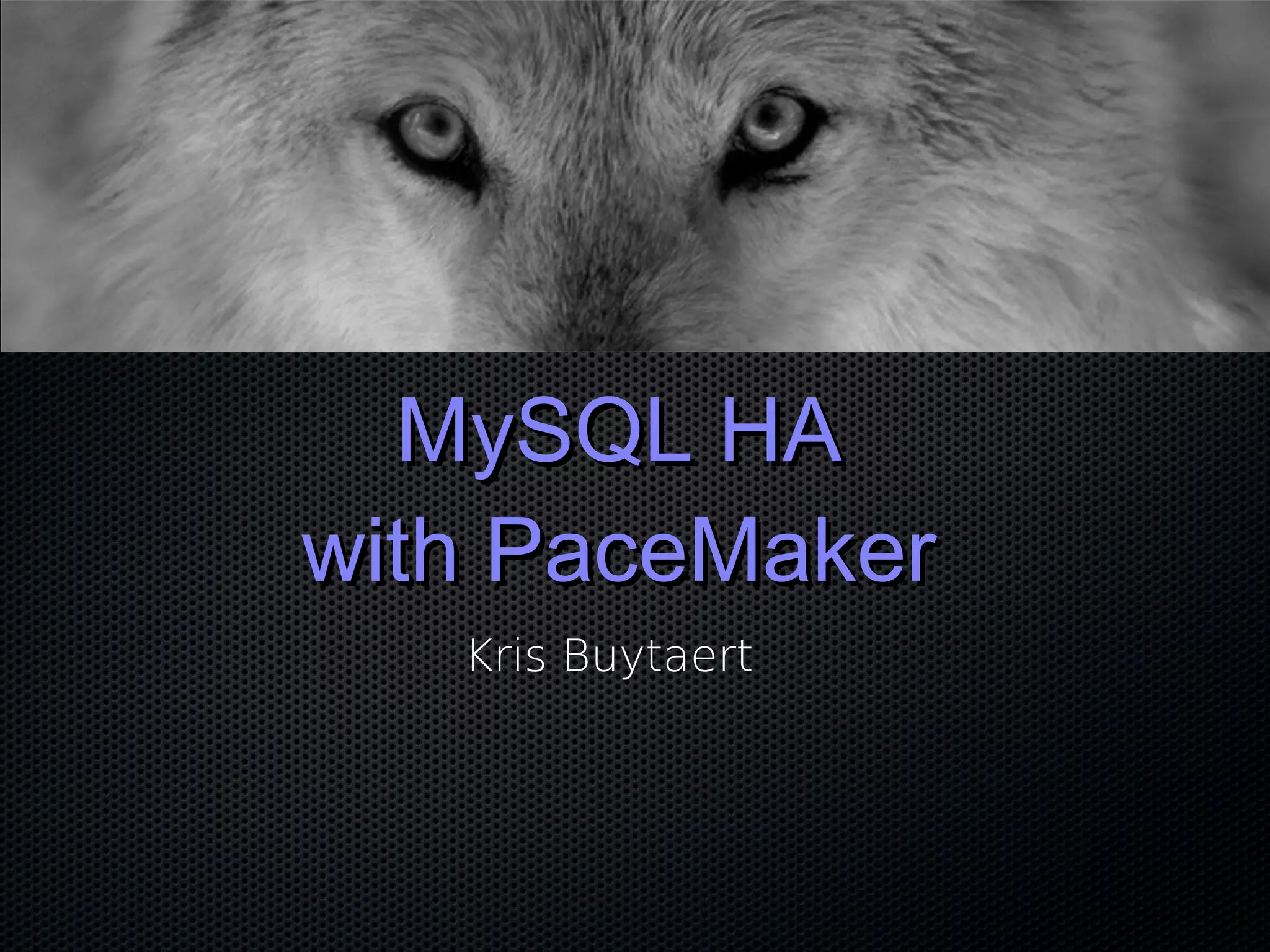 This document discusses using Pacemaker with MySQL for high availability (HA). It covers key concepts in HA including eliminating single points of failure. It then discusses various MySQL HA solutions like replication, DRBD, MySQL Cluster, and using Linux HA tools like Pacemaker. Pacemaker manages resources across nodes to ensure services are always running, and can monitor and migrate MySQL and other services in an HA cluster. The document provides configuration examples and best practices for setting up MySQL HA with Pacemaker.