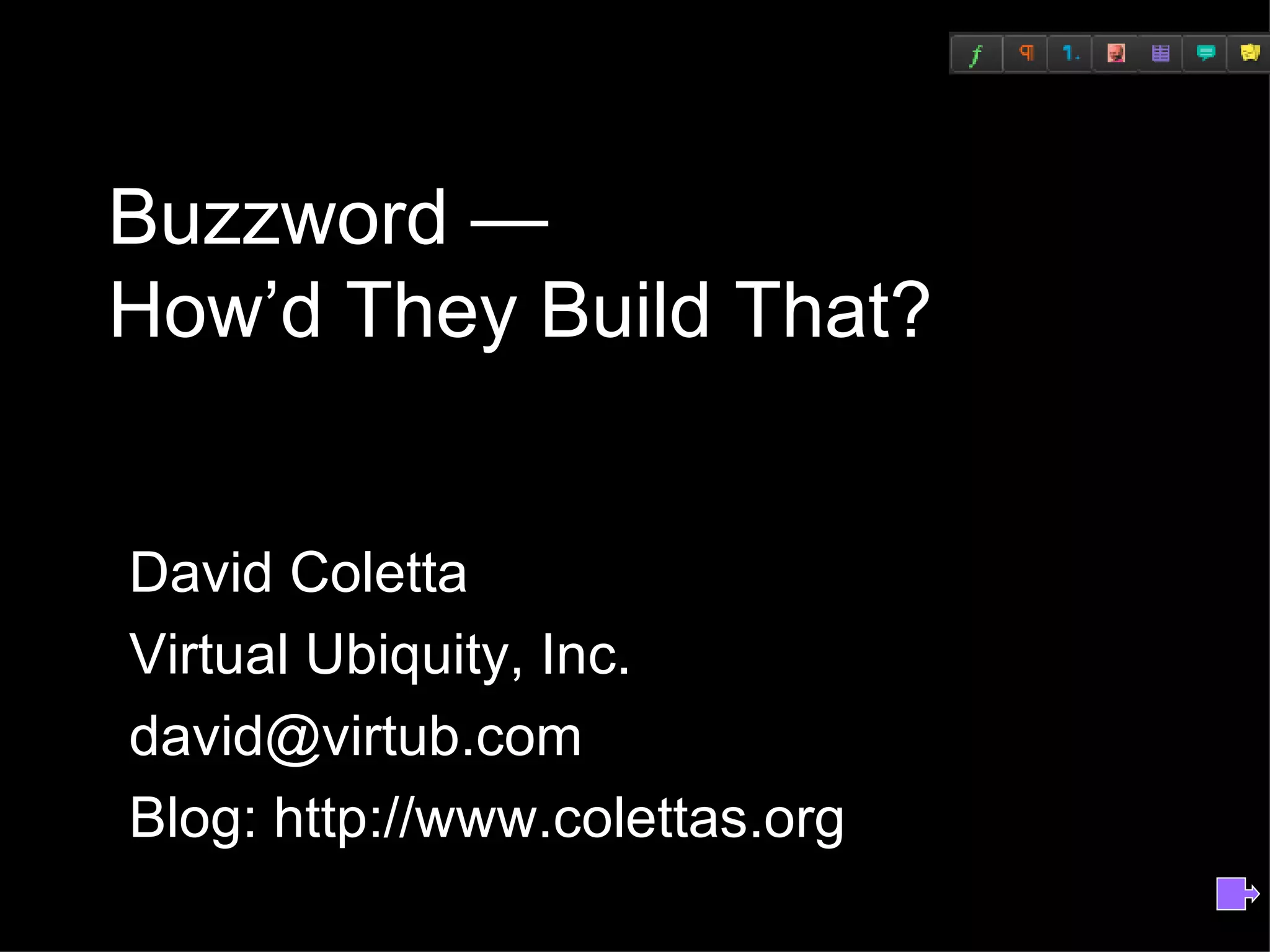 The document details a presentation by David Coletta on the development of Buzzword, a collaboration software, including its internals, features, and challenges faced during its development. Key topics discussed include document structure, asynchronous completion, modularization, and implementing a rich text clipboard, highlighting both technical demos and insights into the Flex platform capabilities. Coletta emphasizes the need for debugging and managing complexities within the application's architecture while engaging the audience with interactive questions and demos.