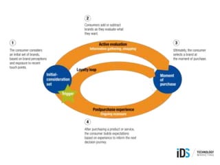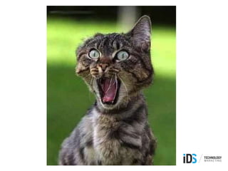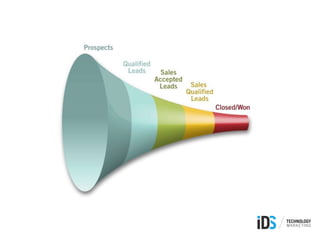 The document discusses key factors for B2B tech marketing. It notes that 77% of website visitors do not scroll past the fold, so content needs a good copy, story, and call to action. It also discusses the importance of responsive design for mobile users, and how the traditional sales funnel has been replaced by a model focused on ongoing customer relationships. The document cautions against an overemphasis on content for its own sake without strategy, and argues the top focus for any B2B organization should be sales enablement.
