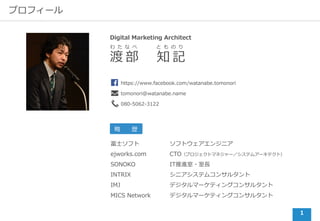 あなたのヒット作を語るLT⼤会 – 「コンサルタントのポテンヒットの作り⽅」 2017.03.06. 渡 部 知 記 わ た な べ と も の り Digital Marketing Archtect