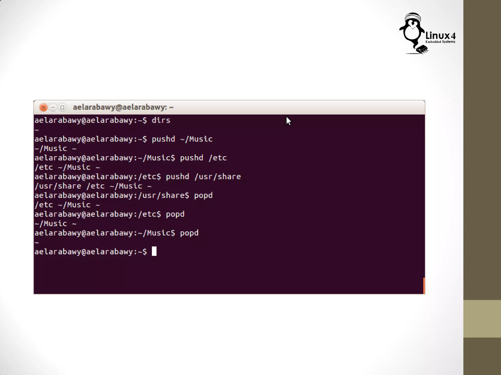 $ cd /home/tom + push the directory â/home/tomâ to the stack