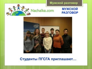 Документ представляет проект 'Мужской разговор' для мальчиков 3-4 классов, направленный на формирование качеств настоящего мужчины через различные мероприятия и этапы. Проект включает в себя обучение вежливости, галантности, физическому развитию и знанию истории географических открытий. В процессе обсуждаются правила поведения и навыки, необходимые для становления настоящим мужчиной.