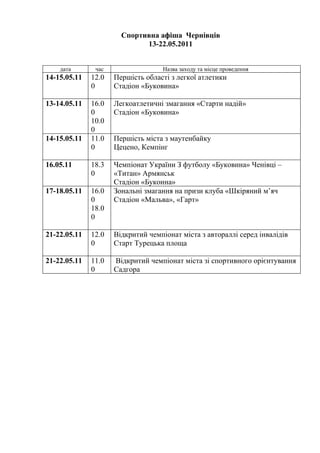 Спортивна афіша Чернівців