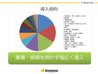 kintoneとはどんな仕組みで、具体的に何ができるのか? デモンストレーションでファストに業務システムを構築する仕組みを詳しくご説明します。 また、kintoneの活用シーンを多様な事例を基にご紹介します。 ・羽田空港の定時出航を支える iPad×kintone ・営業コンサルも導入 メール+Excelからの脱却 ・美容室や学習塾の現場担当者の活用で顧客管理を改善
