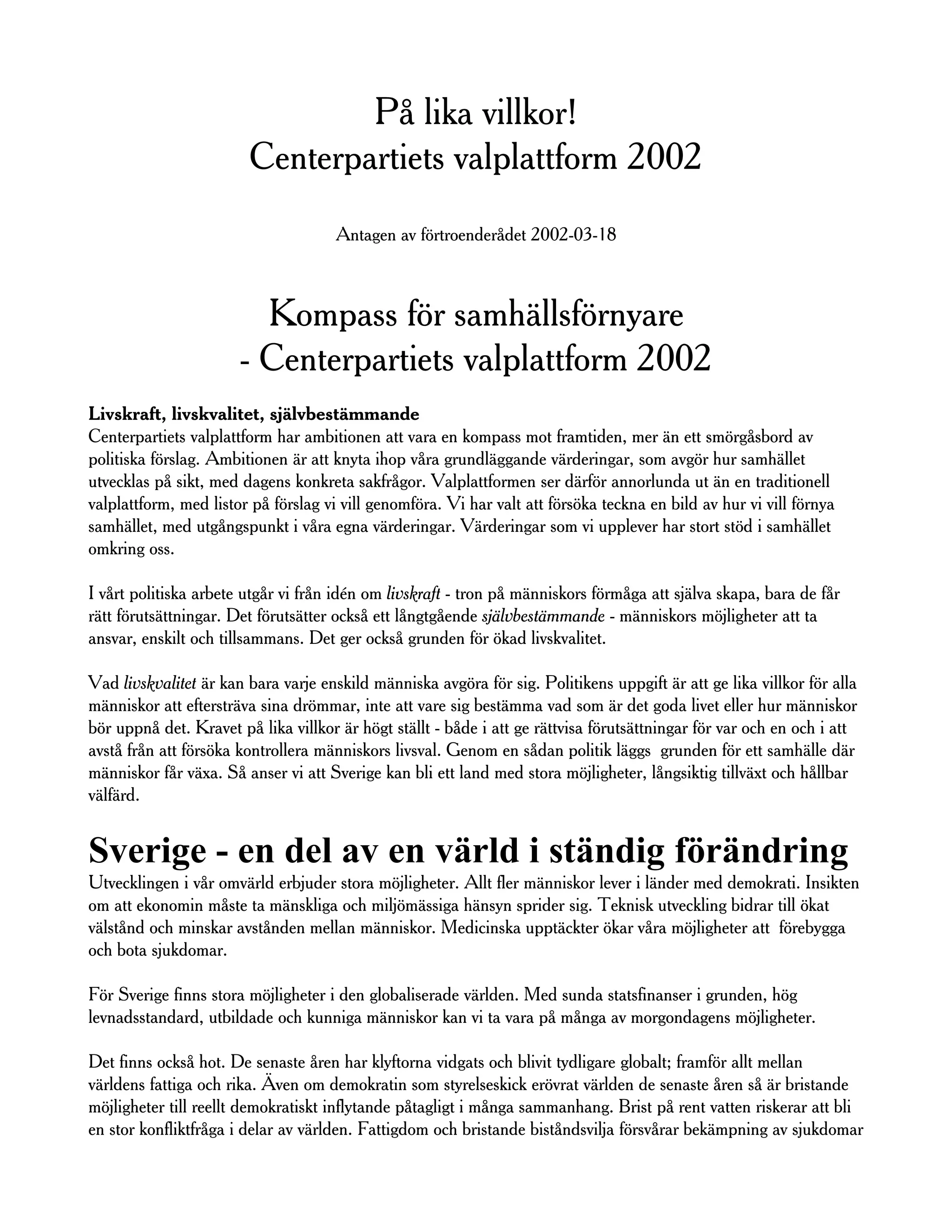 - Centerpartiets valplattform 2002