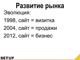 Алексей Трошин, директор по развитию setup.ru, делится опытом создания сайтов, описывая этапы эволюции рынка с 1998 года. Он обсуждает выбор фрилансеров, ценообразование, управление проектами, веб-дизайн и что учитывать при создании сайтов, включая CMS и хостинг. Трошин подчеркивает важность контента, SEO-оптимизации и мобильной версии сайтов для успешной онлайн-реализации.