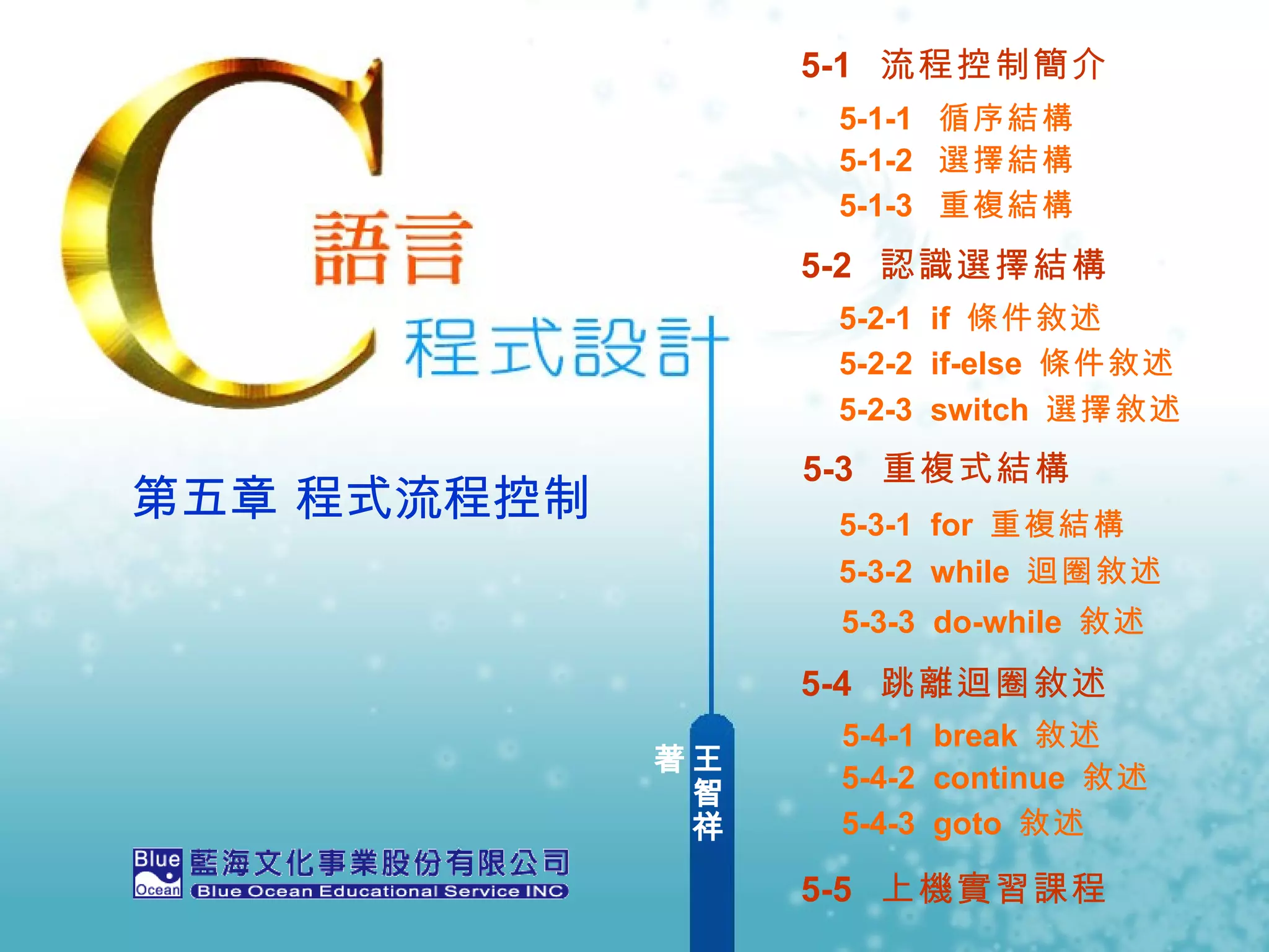 5-3-2 while 迴圈敘述(2) 5-3 重複式結構 P 5-22 程式範例: While 條件敘述的說明與應用範例: CH05_08.c