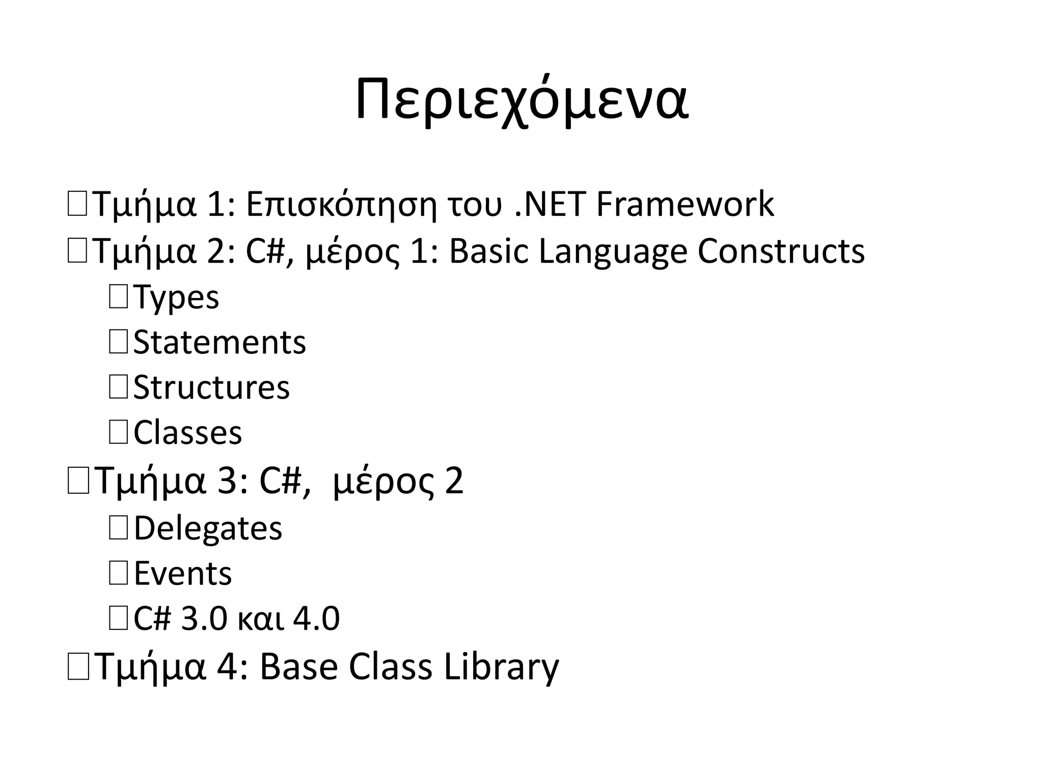 Τμήμα 2: C#, μέρος 1: Basic Language Constructs
