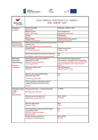 LISTA DANYCH DOTYCZĄCYCHTERENU
