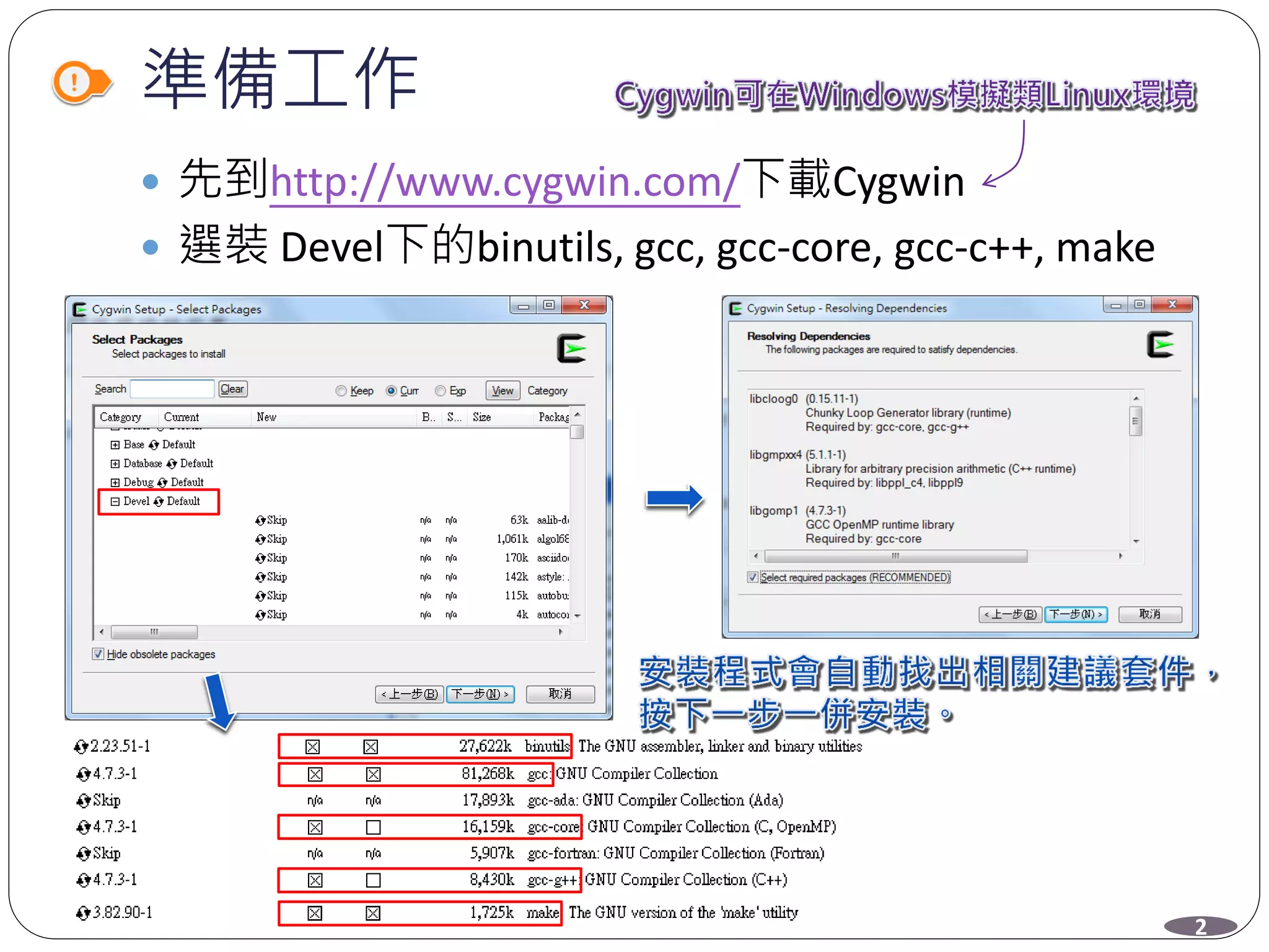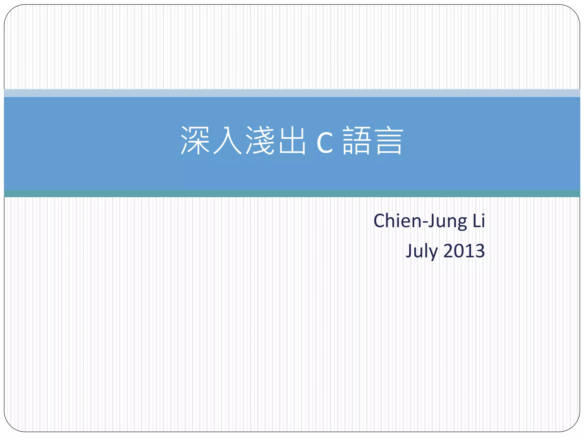 This document provides an introduction to the C programming language in Chinese. It discusses downloading and installing Cygwin on Windows to get a development environment for C. It then covers basic C syntax like printf(), variables, conditions, loops, functions, pointers, arrays, and strings. Examples are provided like a program to evaluate poker card values using switches and if/else statements. The document emphasizes learning C through practical examples and exercises.