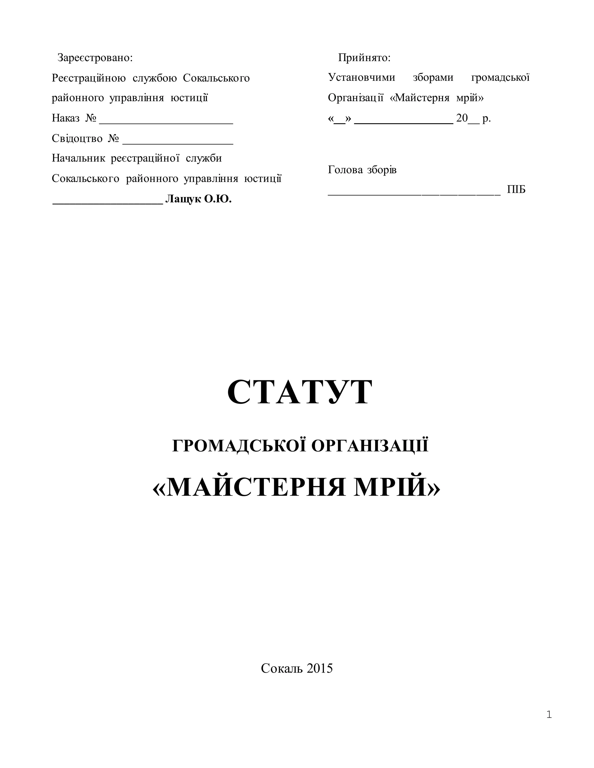 1.4. ГРОМАДСЬКА ОРГАНІЗАЦІЯ «МАЙСТЕРНЯ МРІЙ» створена та діє у