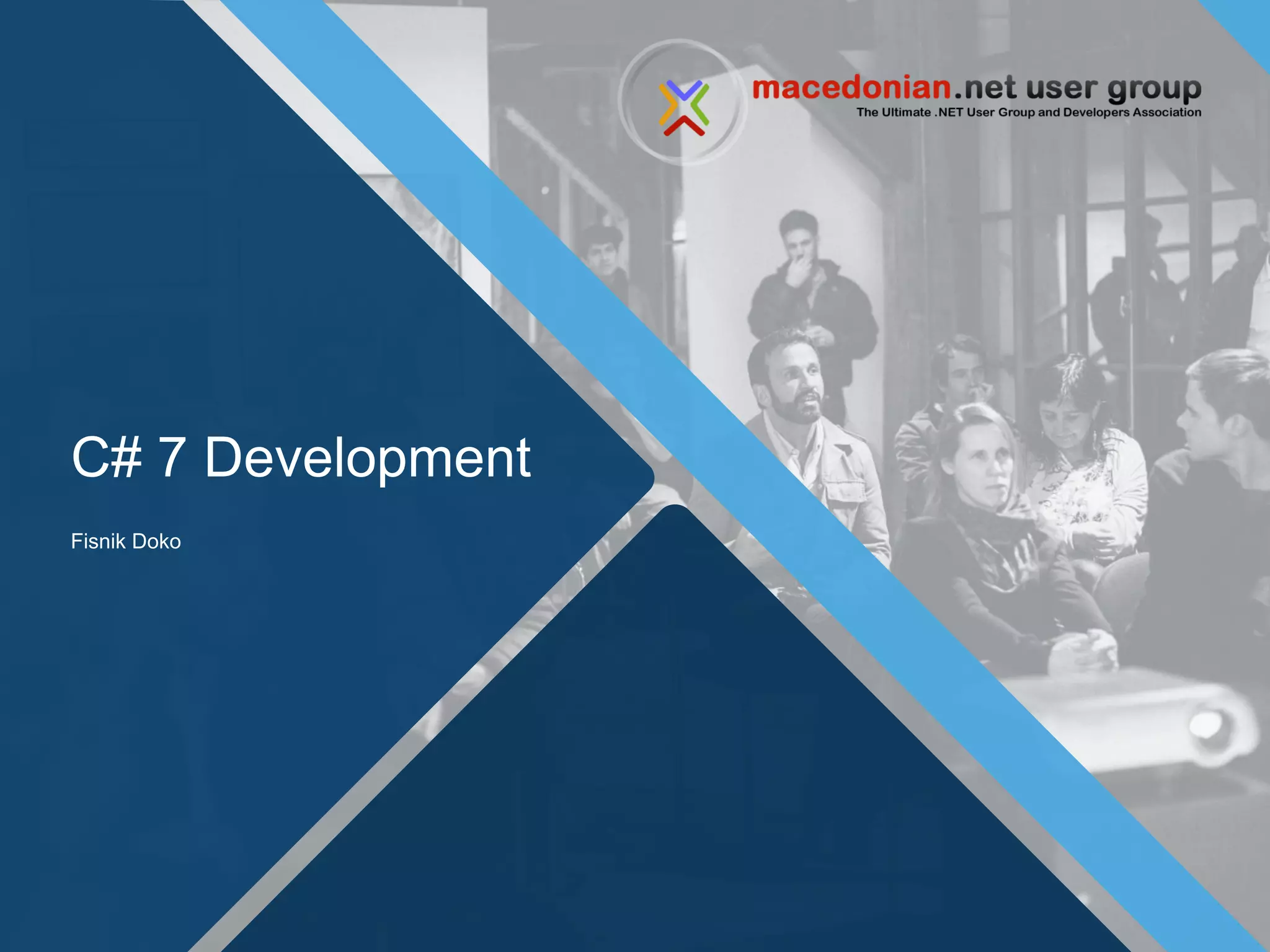 This document provides a summary of C# versions and new features introduced in C# 7.0, 7.1, 7.2, and 7.3. It discusses features such as binary literals, digit separators, local functions, out variables, tuples, deconstruction, discards, ref returns and locals, pattern matching, expression-bodied members, throw expressions, and more. It also briefly previews some planned features for C# 8.0 like asynchronous streams/sequences, records, ranges, and nullable reference types.
