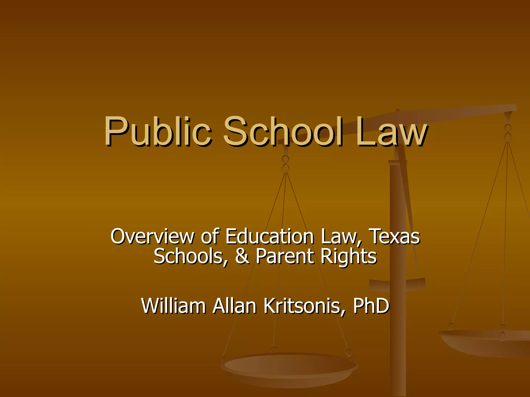 This document provides an overview of public school law in Texas, including sources of law such as constitutional law, statutory law, administrative law, and judicial law. It discusses key laws and court cases that have shaped education policy. It also summarizes Texas laws on school finance, parental rights, and options for private and home schooling.