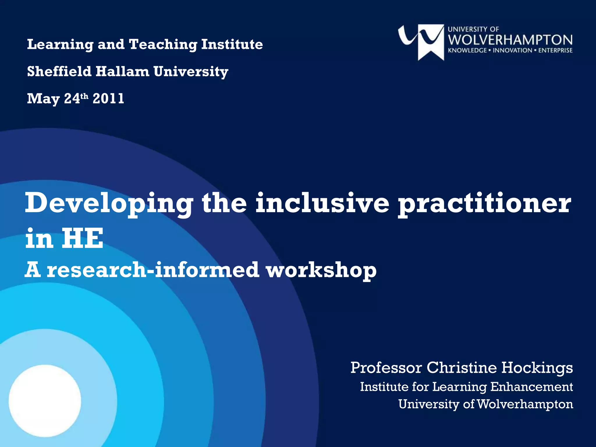 The document discusses developing inclusive learning and teaching practices in higher education. It outlines principles of inclusion, such as creating safe spaces and harnessing student experience. Research found that inclusive academic engagement occurs when teachers get to know students, establish collaborative learning norms, and connect course content to students' lives. The document advocates for teachers to become "artisan teachers" through mindful and flexible practices that anticipate and respond to student needs. It encourages open sharing of teaching resources and strategies to further inclusive education.