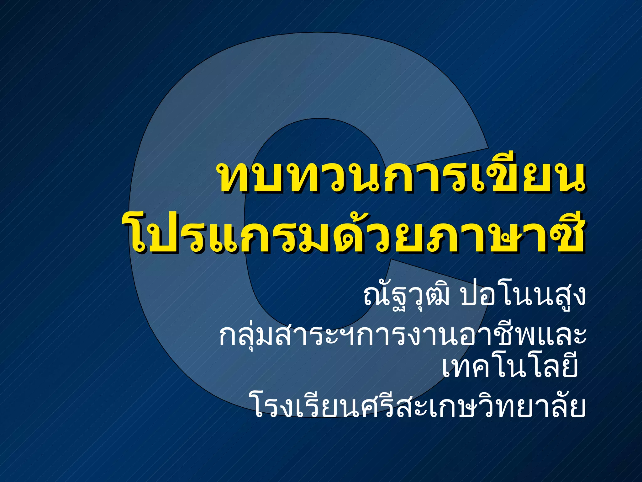เอกสารอ้างอิง สไลด์บรรยาย การโปรแกรมภาษา C โดย รศ . ธีรวัฒน์ ประกอบผล สไลด์บรรยาย Crash Course in C โดย J . R. Cooperstock