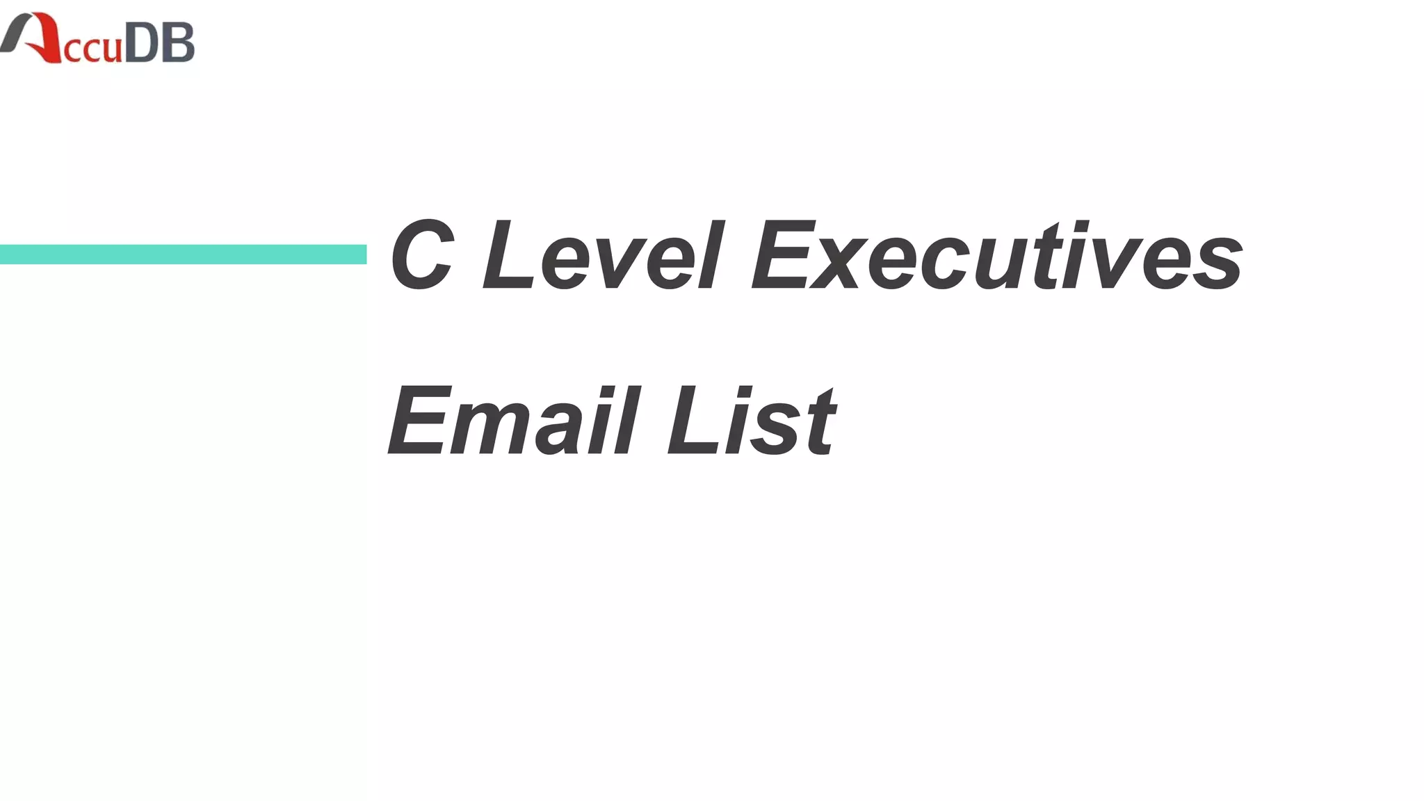 The document discusses AccuDB's exclusive C-level mailing list database that can help businesses reach top executives across industries. The database contains contact information for CEOs, CFOs, and other C-level roles. It provides verified, high-quality data from various industries that ensures over 90% delivery rates. The database helps boost business growth and gives clients a competitive advantage in marketing campaigns.