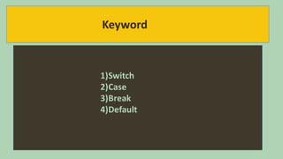 The document discusses different types of conditional statements in C programming including if statements, if-else statements, nested if statements, else if chains, and switch statements. It provides examples of the syntax for each statement type and describes how they allow programmers to execute different code based on whether a condition is true or false. The document also compares switch statements to if-else ladders, outlining advantages and limitations of each as well as recommendations for when each type of conditional statement is best used.