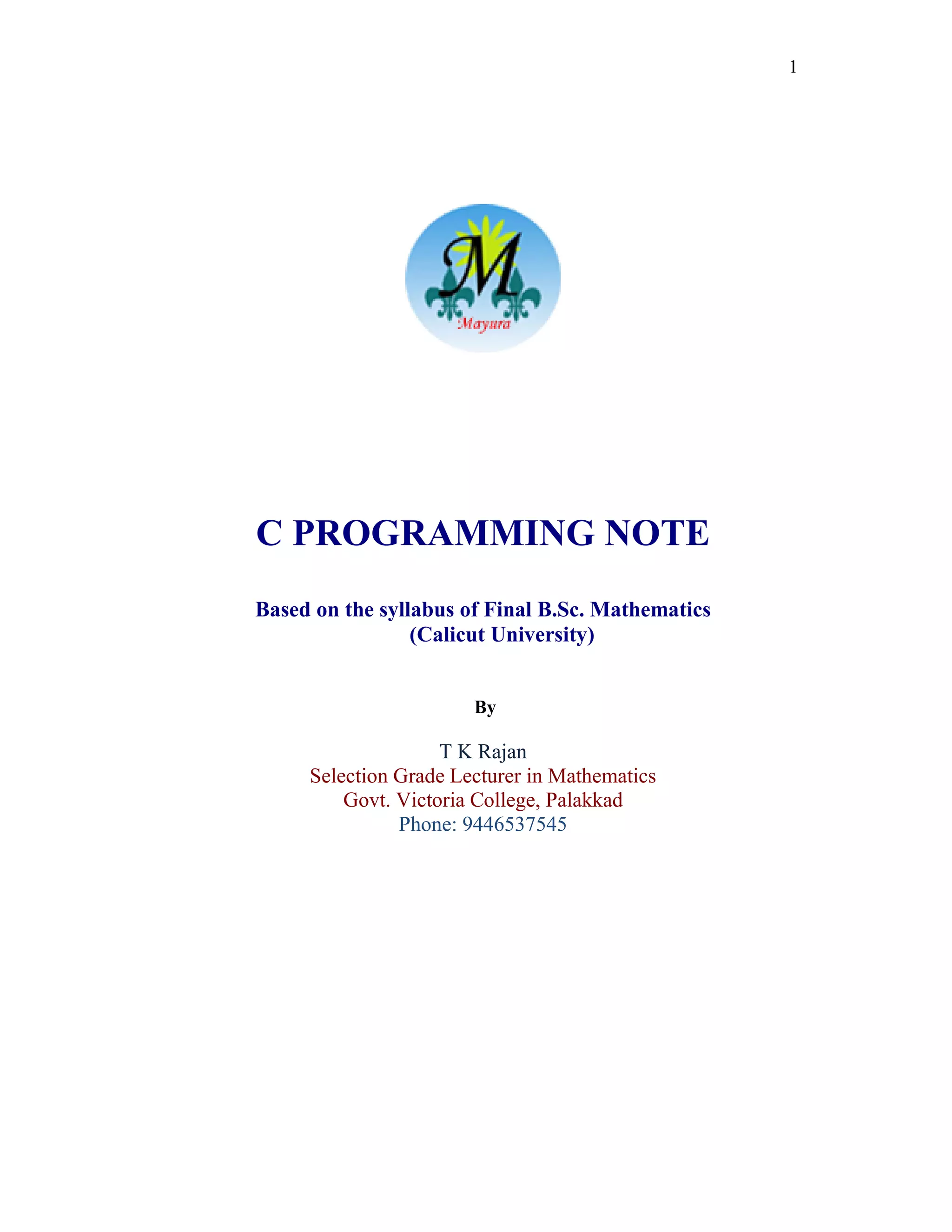 This document provides an introduction to the C programming language. It discusses the basic structure of C programs which consist of functions, with one main function that is executed first. The main components are described as input, output, and central processing units. C uses characters like letters, numbers, and symbols. Key words and identifiers are used to name variables and functions. The document then goes on to explain other C fundamentals like data types, operators, control structures and more in detail across several chapters.