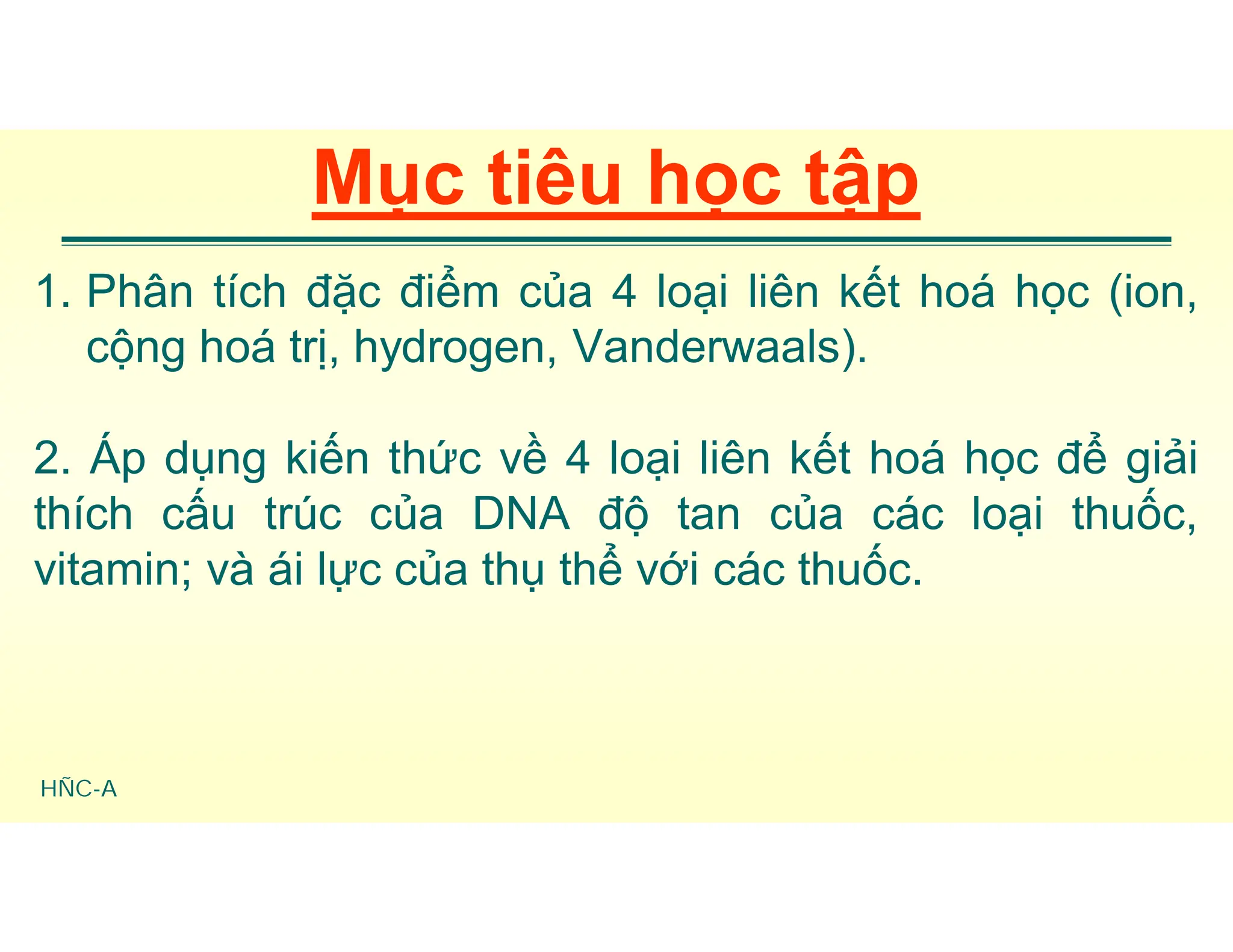 và H linh động (H-O, H-N, H-F…), năng lượng liên kết yếu.