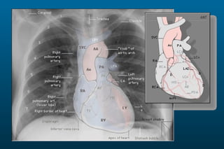 1) The posterior-anterior (PA) view is the standard and most reliable technique for a chest x-ray. It allows detection of air under the diaphragm. 2) A lateral view helps localize infiltrates and evaluate the cardiomediastinal silhouette, effusions, and left atrial dilation. 3) An anterior-posterior (AP) view is used when a patient is too ill to be transported, but image quality is poorer and structures may appear enlarged compared to a PA view.