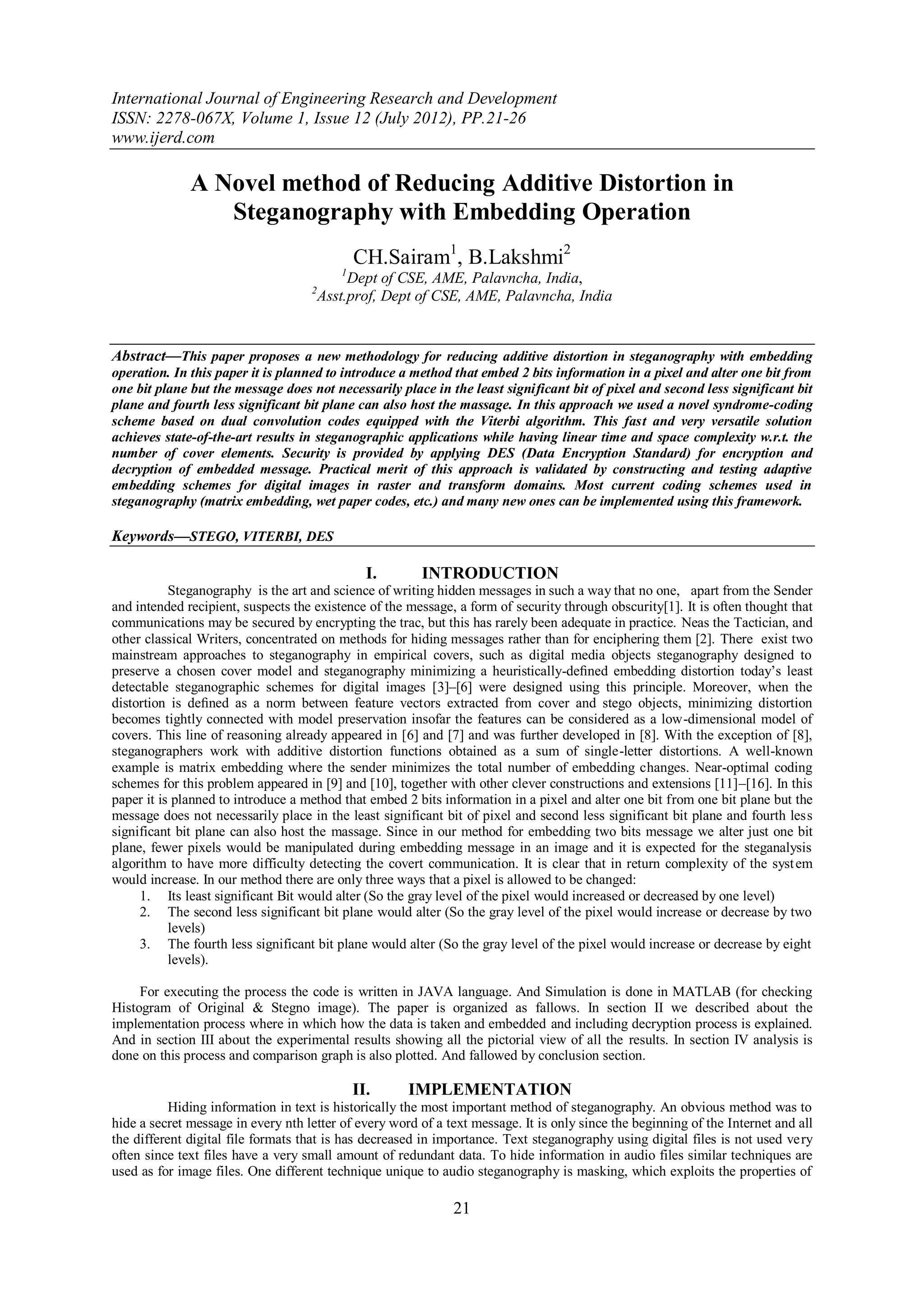 This paper presents a novel method for reducing additive distortion in steganography by embedding two bits of information in a single pixel and altering only one bit from a bit plane, allowing for greater message security and reduced detection risk. The approach utilizes a syndrome-coding scheme based on dual convolution codes and employs the Viterbi algorithm, achieving efficient results in steganographic applications while maintaining practicality through adaptive embedding schemes for digital images. Additionally, the method incorporates encryption via the Data Encryption Standard (DES) to safeguard the embedded messages, demonstrating high security and robustness against attacks.
