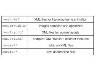 This document provides an overview of mobile software engineering for Android development. It includes links and instructions for downloading the Android SDK, setting up an eclipse development environment, and using Android emulator and debugging tools. It also summarizes Android app components like activities and layouts, and provides steps for creating a simple "Hello World" Android app with a button to change the displayed text.