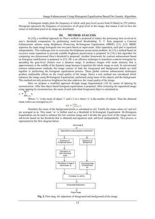 The document discusses a novel image enhancement method using histogram equalization based on a genetic algorithm (GA) to improve visual quality of low-contrast images. This method optimizes image enhancement by reconfiguring pixel spacing and demonstrates superior performance compared to conventional techniques like global histogram equalization. Experimental results show that the GA-based approach not only enhances images more effectively but also computes results faster than traditional methods.