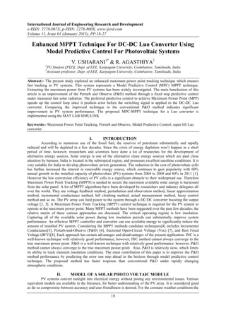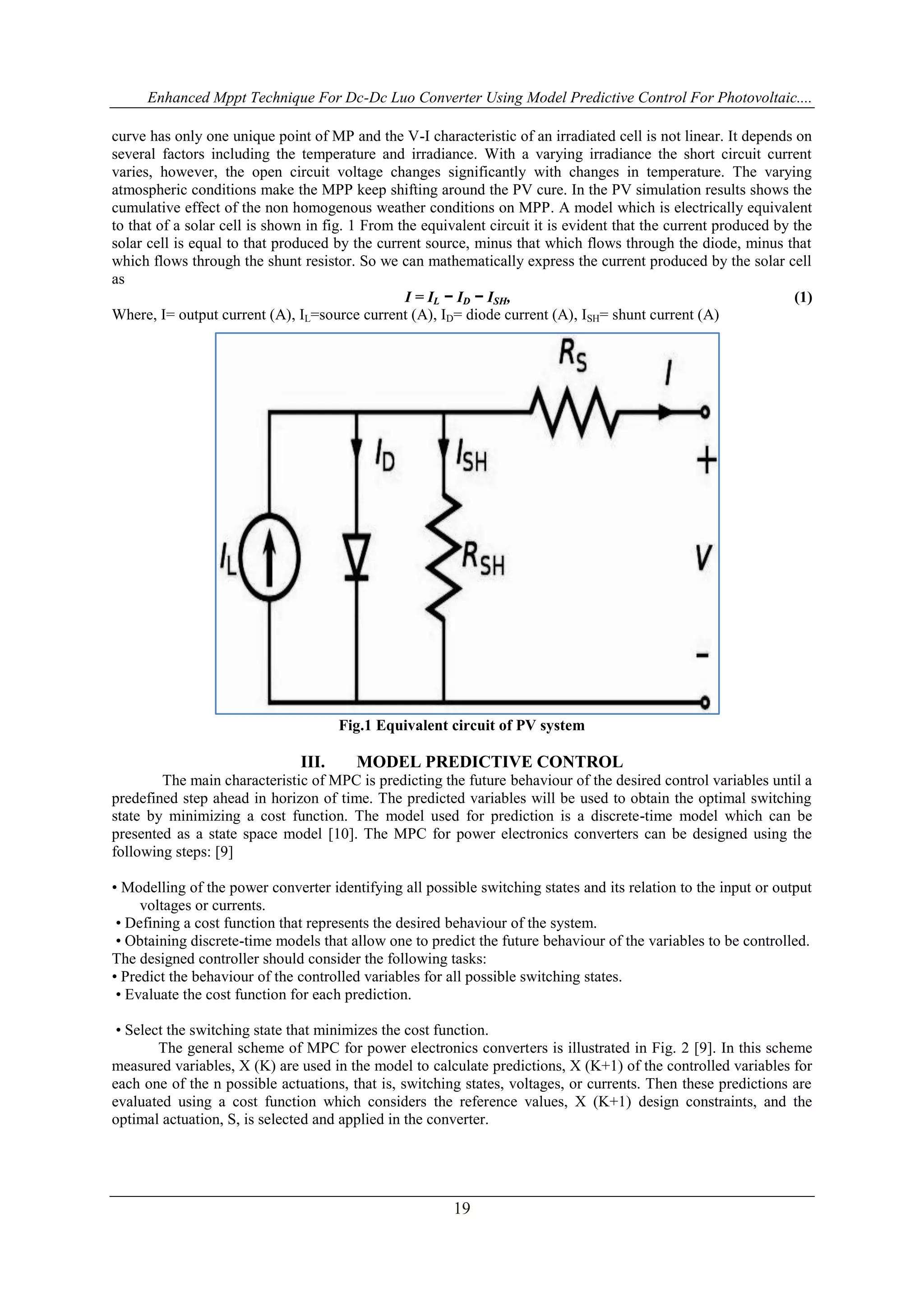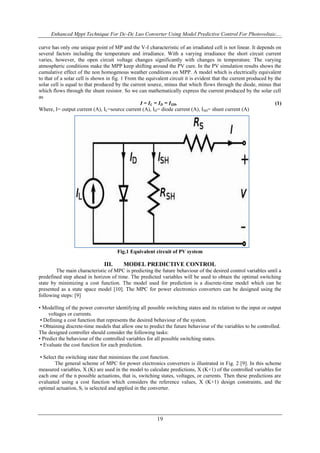 This document presents an enhanced maximum power point tracking (MPPT) technique utilizing model predictive control (MPC) for photovoltaic systems, improving upon the conventional perturb and observe (P&O) method. The proposed MPC-MPPT technique demonstrates faster tracking of the maximum power point during variable solar radiation conditions compared to traditional methods. Simulation results in MATLAB/Simulink confirm significant improvements in both speed and efficiency in harnessing solar energy.