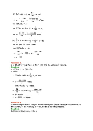 - Calculating percentages of totals like 22% of 120, 25% of Rs. 1000, etc.