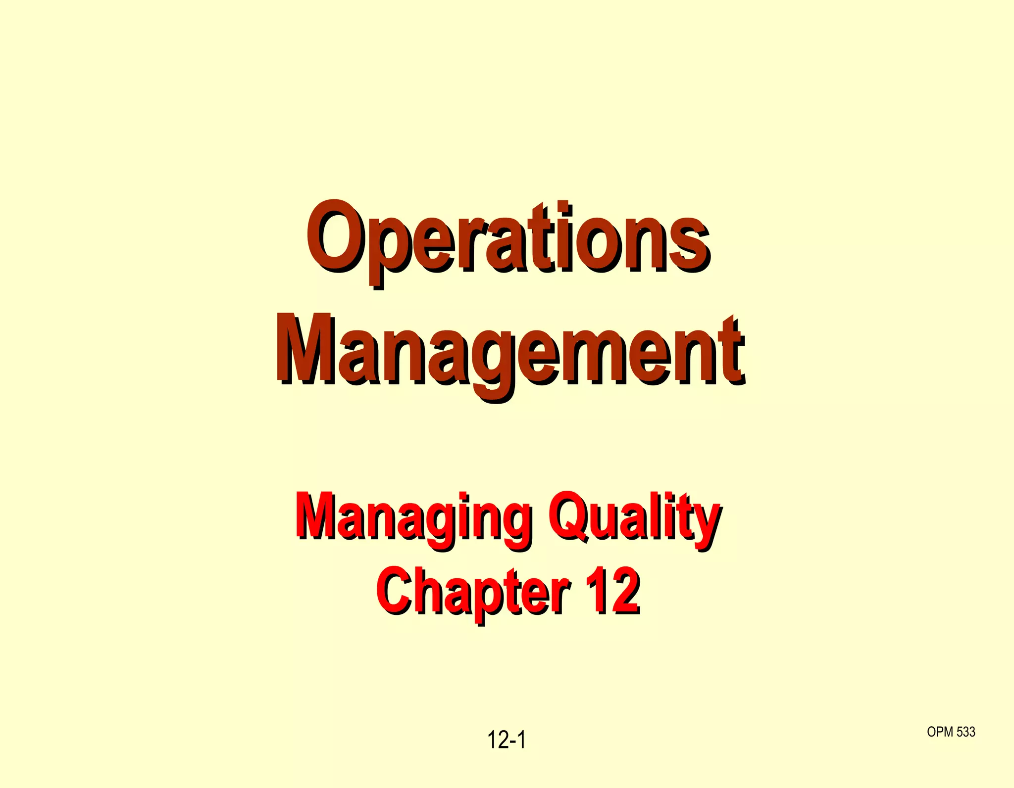 The document discusses various aspects of quality management including ways that quality can improve productivity, the flow of activities necessary to achieve total quality management, definitions of quality, key dimensions of quality, and tools used in total quality management such as continuous improvement, six sigma, employee empowerment, benchmarking, just-in-time, and statistical process control charts. It provides details on quality costs, Deming's fourteen points, concepts of TQM, and seven tools used in TQM including check sheets, scatter diagrams, cause and effect diagrams, Pareto charts, flow charts, histograms, and control charts.