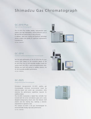 The document provides information on gas chromatography columns from Shimadzu, including: