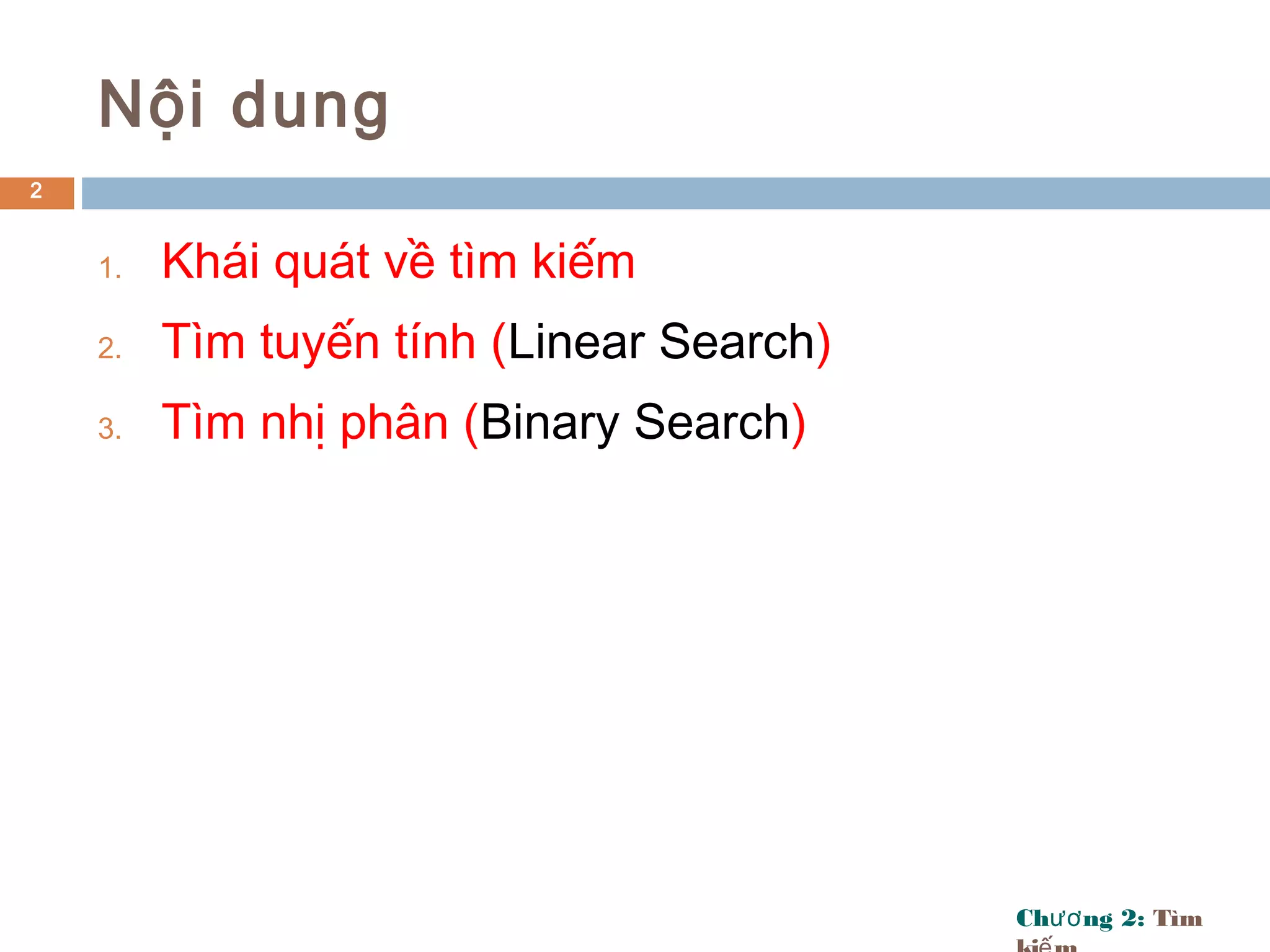 Tài liệu trình bày ý tưởng và thuật toán của hai phương pháp tìm kiếm: tìm kiếm tuyến tính và tìm kiếm nhị phân. Tìm kiếm tuyến tính so sánh từng phần tử trong danh sách, trong khi tìm kiếm nhị phân yêu cầu danh sách phải được sắp xếp và sử dụng phương pháp phân chia để tìm kiếm hiệu quả hơn. Tài liệu cũng đề cập đến những ưu điểm và nhược điểm của từng thuật toán trong thực tế.