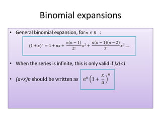 1) Binomial expansions, partial fractions, trigonometry formulas, and techniques for integration like volumes of revolution.