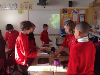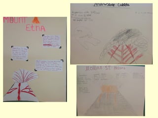 Class 4S and 4A learned about earthquakes and volcanoes, researching specific volcanoes around the world. They made their own seismographs to learn about earthquakes and conducted investigations, painting volcano eruptions in Jackson Pollock's style. The children spoke to a park ranger in Yellowstone Park and wrote explanation texts about volcanoes to compile in an eBook, and will now explain what they have learned.