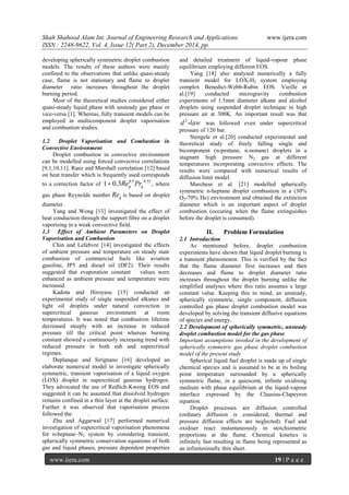 The document presents a model for the combustion of liquid droplets, focusing on the effects of ambient temperature and composition on combustion parameters. Key findings indicate that increasing ambient temperature raises the adiabatic flame temperature, burning constant, and mass burning rate, while reducing droplet lifetime. The study highlights the development of a gas-phase droplet combustion model suitable for applications in spray combustion codes.