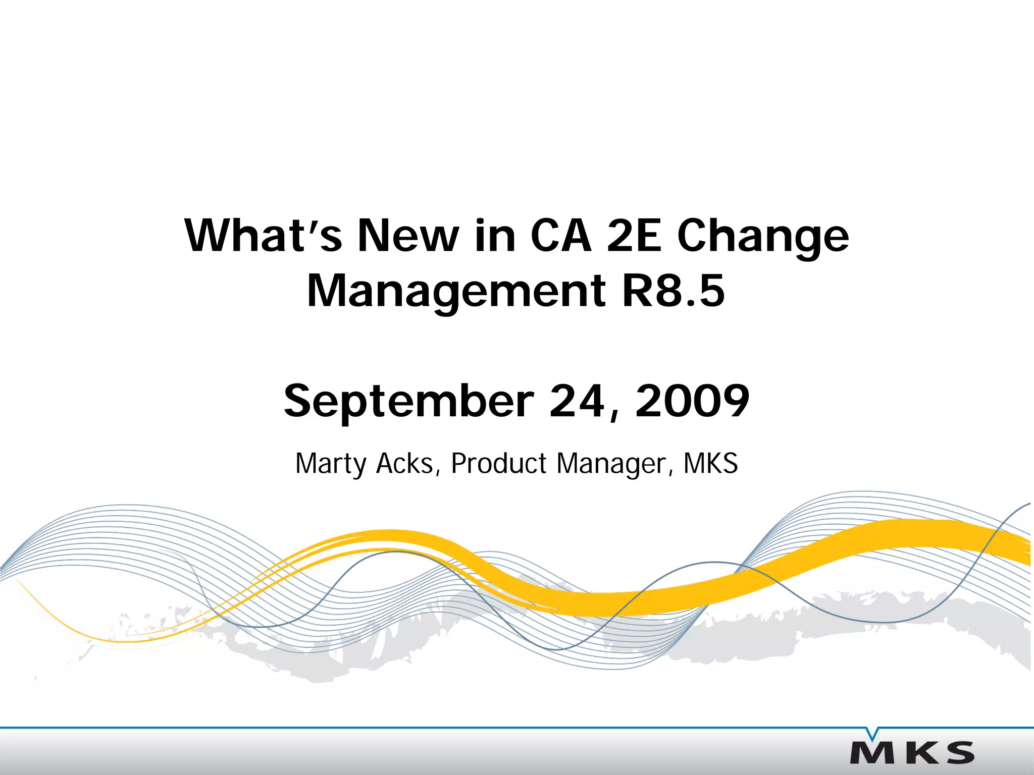 The document summarizes the key changes and new features in CA 2E Change Management R8.5, including enhanced integrations with CA 2E and RDi, improved graphical capabilities, a new integration with CA Plex, improved security and auditability, and over 175 enhancements and fixes. It also provides an overview of MKS Implementer 2009 and previews upcoming releases.