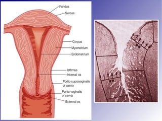 This document provides an overview of carcinoma of the cervix, including its anatomy, histology, risk factors, evaluation, staging, and treatment. Some key points: