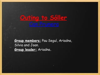 The document summarizes the activities and observations of a student group during an outing to Sóller, Mallorca, Spain. It describes their train ride there, including details about the seats, wagons, tunnels, and scenery. It outlines their visits to the train station, botanic garden where they learned about plants, and the town of Sóller, noting points of interest. The document also reviews their tour of the cemetery and observations of modernist architecture before assessing what they learned.