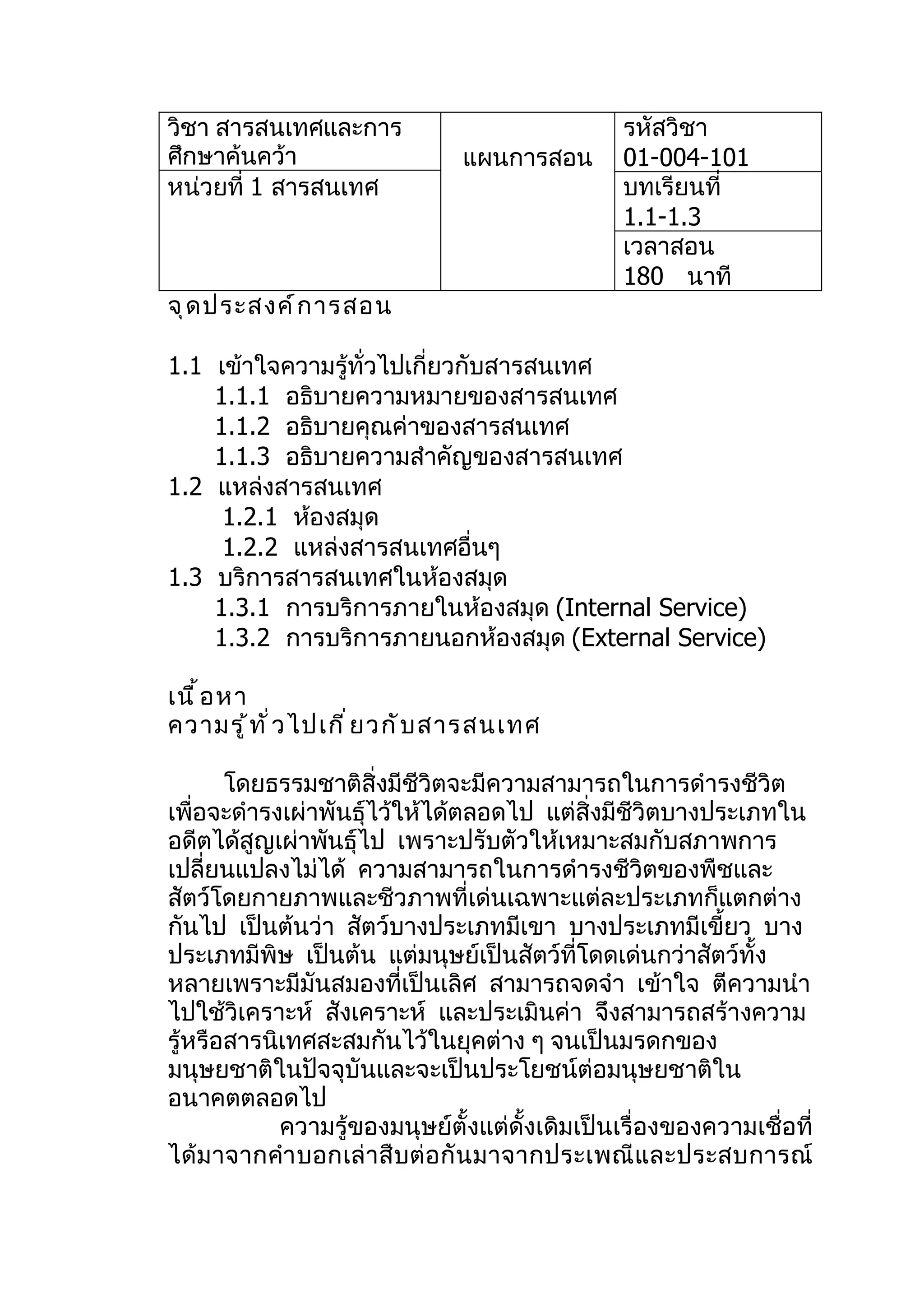 ศึกษาค้นคว้า แผนการสอน 01-004-101
