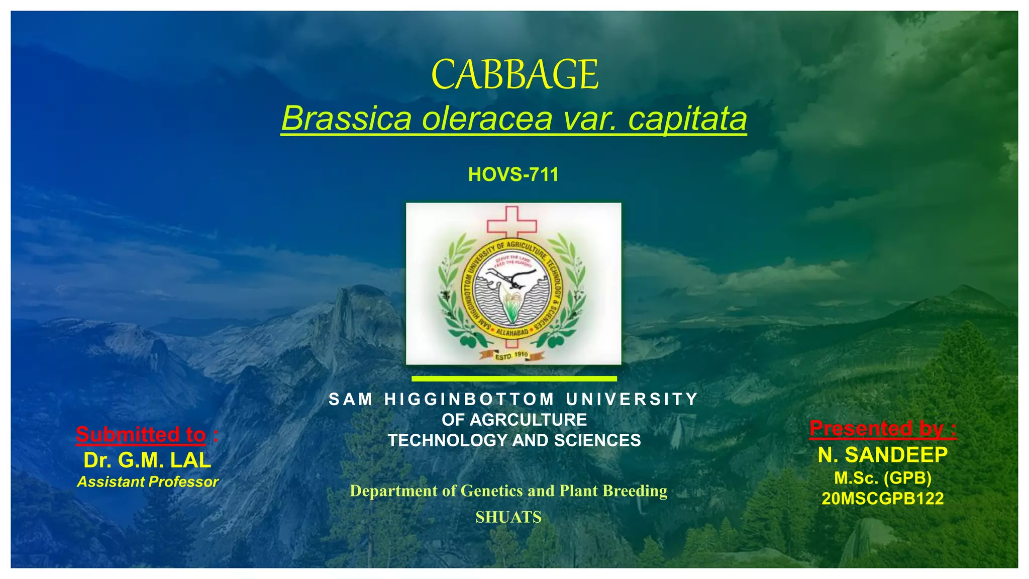 - Breeding objectives for cabbage include higher yield, disease resistance, longer storage ability, and traits suitable for different growing conditions. Breeding methods include open-pollinated cultivars developed through mass selection and inbreeding, as well as hybrid cultivars produced using self-incompatible inbred lines.
