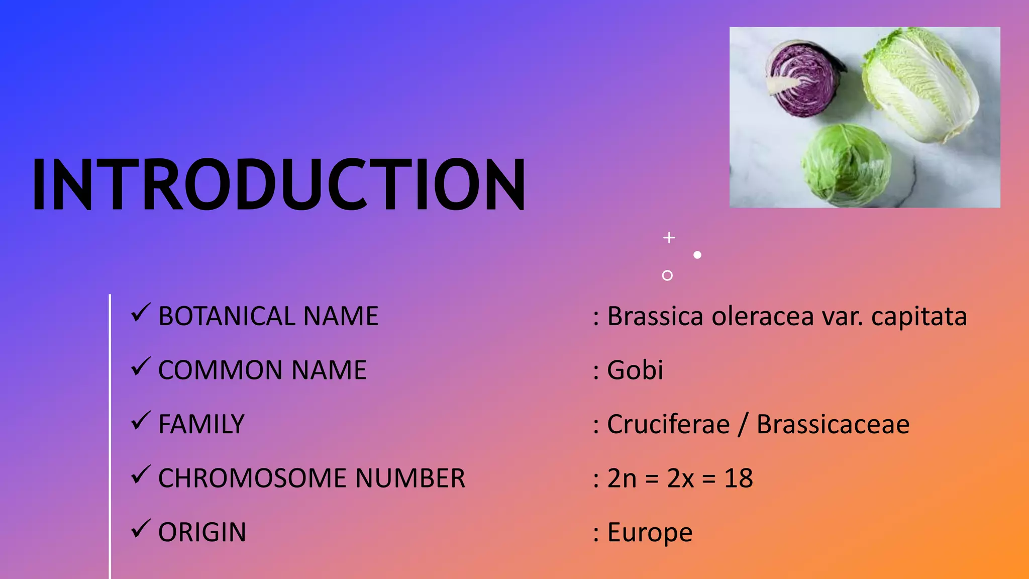 - Cabbage (Brassica oleracea var. capitata) originated in Europe and is one of the most widely produced vegetables worldwide.