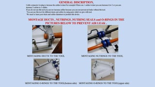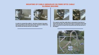 This document provides information about a fiber optic cable blowing machine called the UP-HYDRO, including its quality policy, vision, mission, and technical details. The UP-HYDRO is a hydraulic cable and tube blowing machine that is designed to blow cable and tubes through ducts. It includes a hydraulic power unit to provide hydraulic power. The company aims to provide high quality products and services, maximize customer satisfaction, and create value for employees and customers.