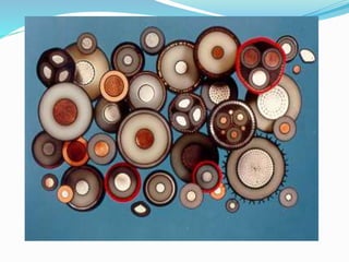 This document provides an overview of low voltage power cables. It discusses cable design principles including voltage ratings, conductor materials and sizes, insulation types, core identification, assembly processes, bedding, armoring, sheathing, and relevant standards. The key points are that low voltage cables operate between 300/500V and 600/1000V, use copper or aluminum conductors, and common insulation materials are PVC, XLPE, and EPR. Cores are typically identified by color and the document outlines the assembly, bedding, armoring, and sheathing processes. Finally, common international and national standards for low voltage cables are listed.
