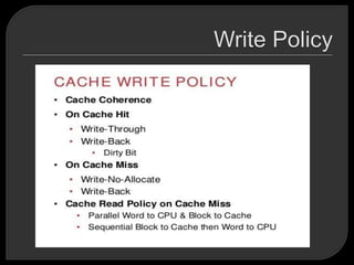 Caches are commonly used in high-performance computing to improve performance. However, high-performance computing applications often perform poorly on computer architectures that employ caches, unless the application software is specifically tuned to exploit the caches. There are several basic design elements that differentiate cache architectures, including the cache size, mapping function, replacement algorithm, write policy, line size, and number of cache levels. The replacement algorithm determines which block of data to remove from the cache when a new block needs to be added.