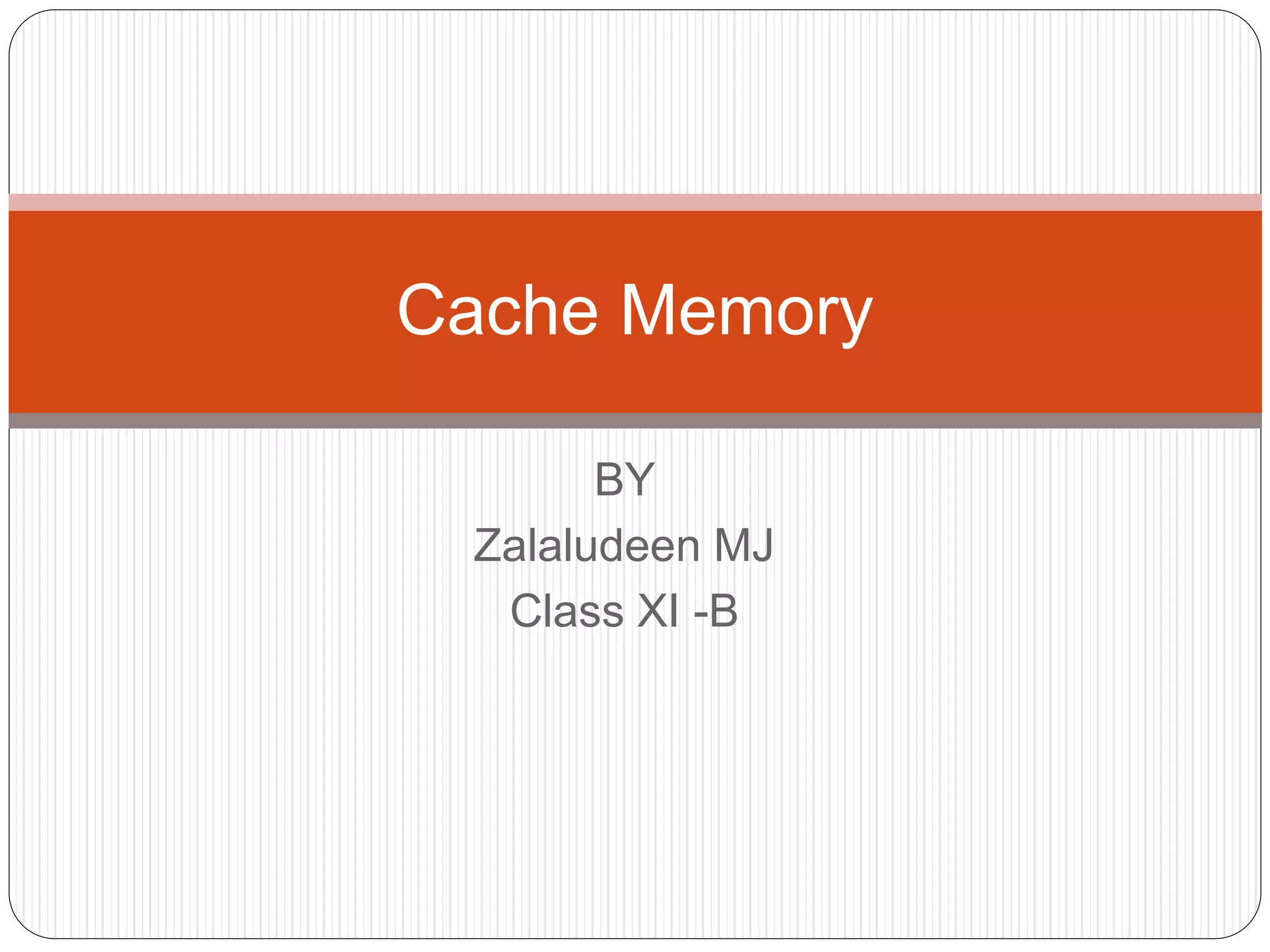 Cache memory is a type of fast RAM that a computer processor can access more quickly than regular RAM. It stores recently accessed data from main memory to allow for faster future access if the same data is needed again. Cache memory is organized into levels based on proximity and speed of access to the processor, with L1 cache being fastest as it is located directly on the CPU chip, and L2 cache and main memory being progressively slower as they are located further away. Modern processors integrate both L1 and L2 cache onto the CPU package to improve performance by reducing access time.