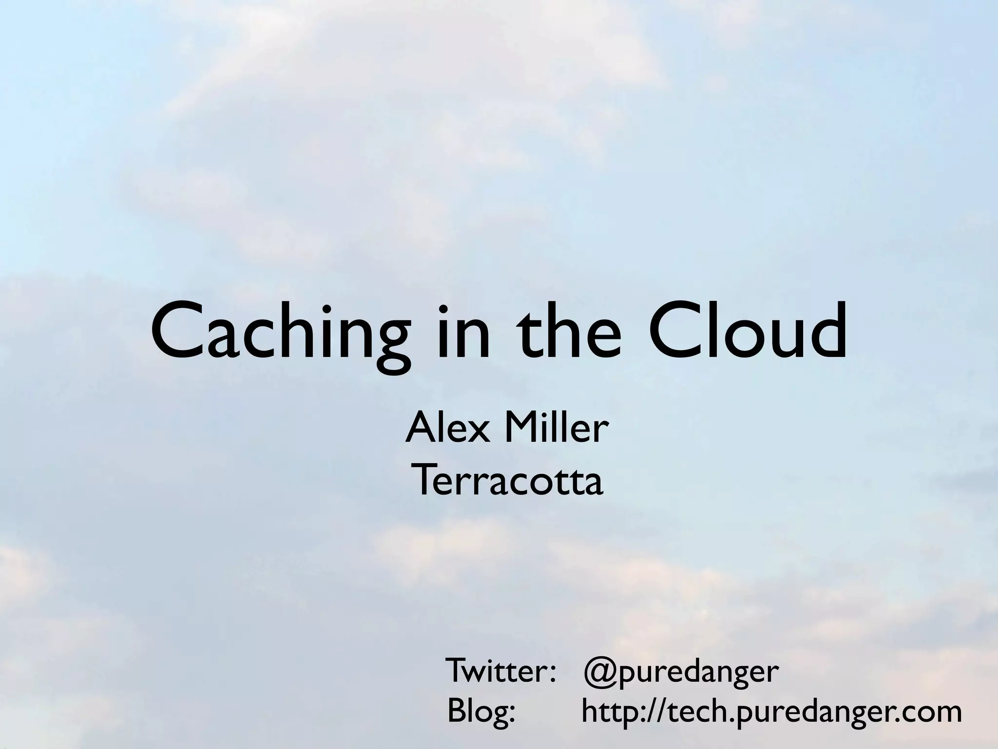 The document discusses the challenges and solutions of cloud caching, emphasizing the need for scalability and elasticity in cloud environments. It highlights the advantages of using Terracotta, an open-source Java clustering technology, for data storage and processing efficiency. The text also presents case studies of business applications, illustrating cost savings and improved reliability through private cloud deployments.