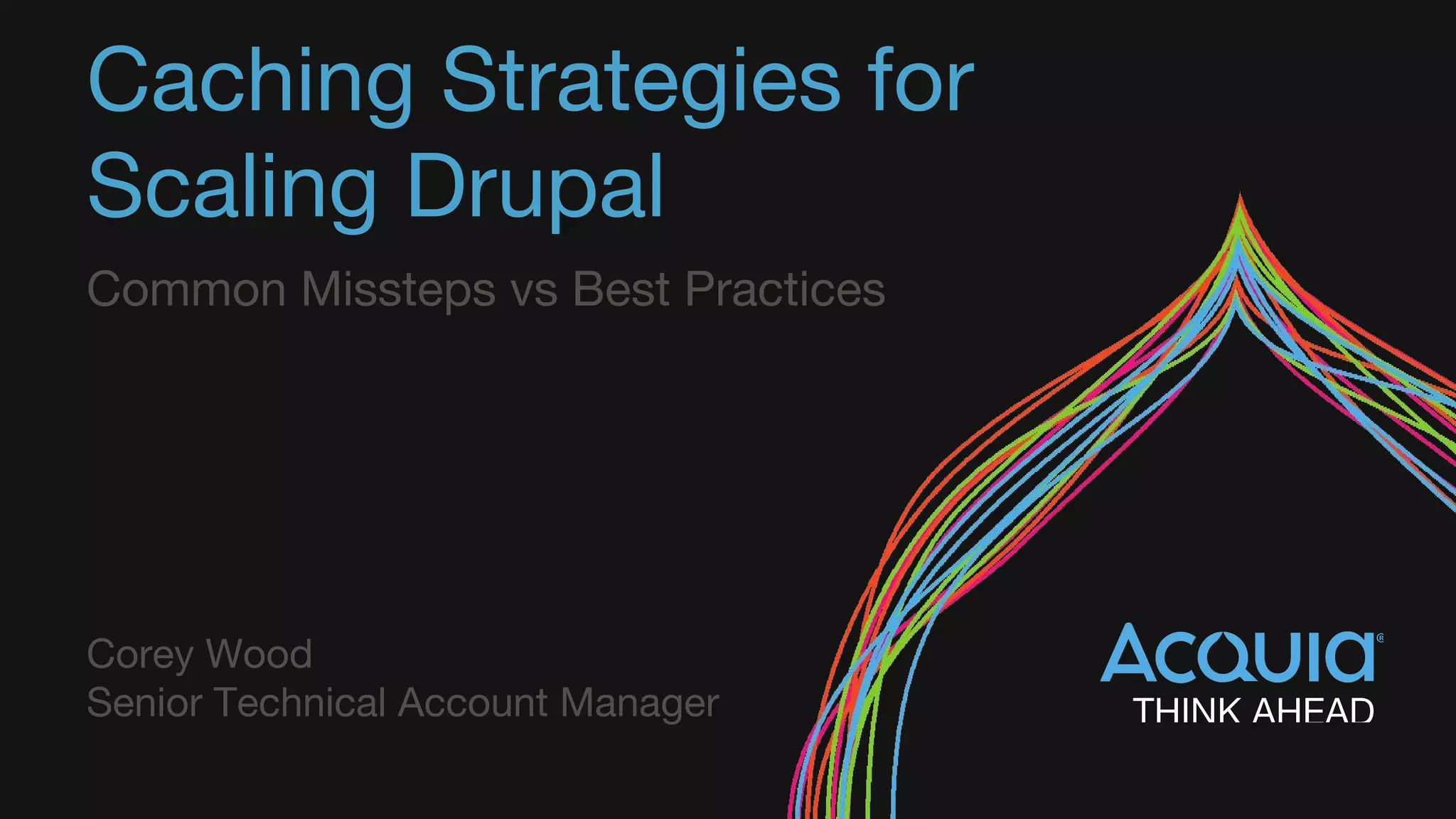 This document discusses caching strategies for scaling Drupal websites. It covers caching best practices in Drupal 7 and 8, including how to invalidate, purge, and warm caches. It also discusses leveraging external caching through Memcache, Varnish, and CDNs. The presenter is Corey Wood, a senior technical account manager and Drupalist since 2006.