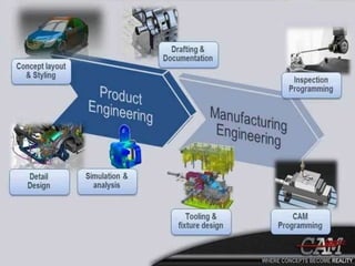 This document provides information on Swapnil Shahade's career and education background, as well as summaries of key engineering software topics - Product Lifecycle Management (PLM), Computer Aided Design (CAD), Computer Aided Engineering (CAE), and Computer Aided Manufacturing (CAM). It outlines Swapnil's experience as Assistant Manager at two companies, and defines PLM as strategic processes to reduce product costs and scale production. CAD uses computer technology to design and document products, while CAE simulates performance to improve designs. CAM uses design data to control automated machinery for manufacturing. The document concludes with examples of popular CAD/CAE/CAM and PLM software.